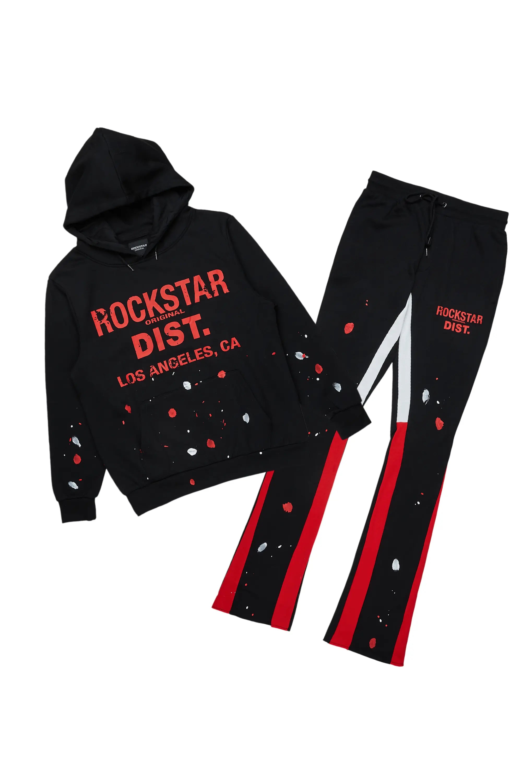 Rockstar Art Dist. Black/Red Hoodie/Stacked Flare Pant Set