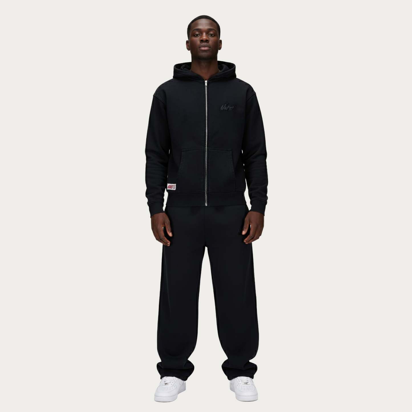 BLACK BASIC ZIP HOODIE