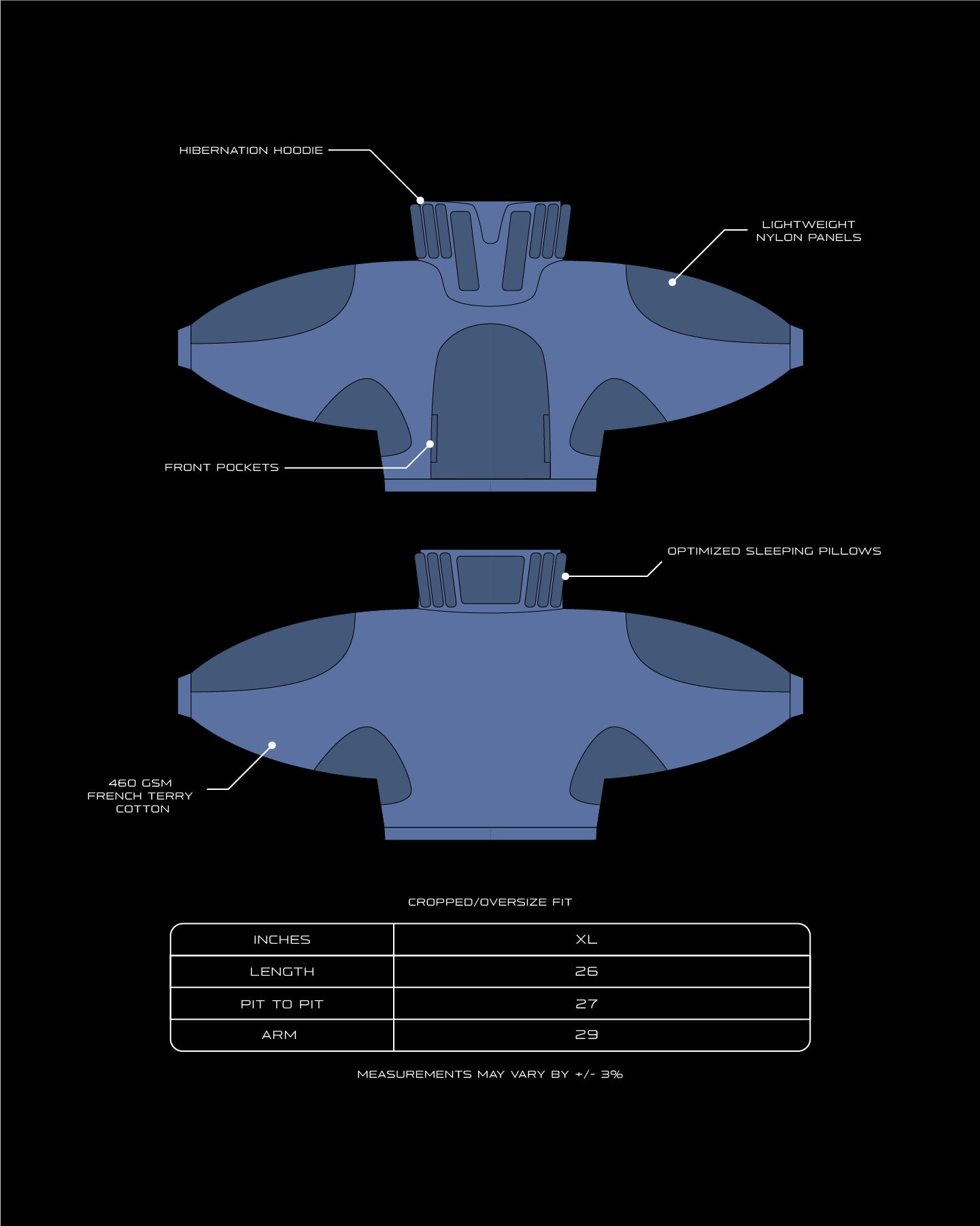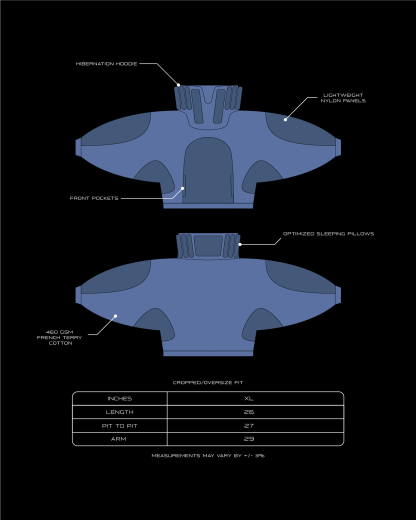 Features & Construction: • Large front pocket • Neck panels • Custom panel pattern