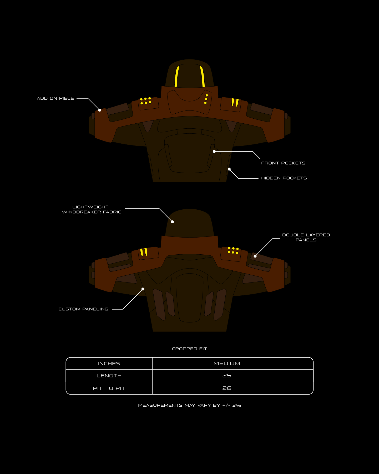 Features & Construction: • Removable add on piece • Multiple double layered panels • Shiny satin grey stitching • Custom panel pattern