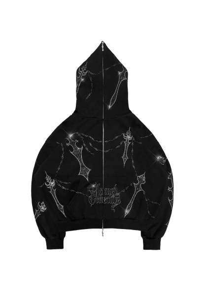 DAGGERS RHINESTONE ZIP HOODIE BLACK