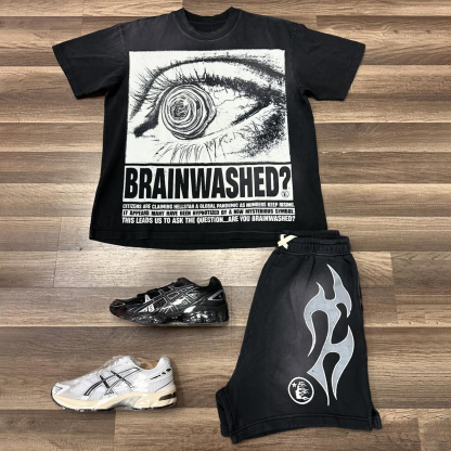 Eyes Letters Print T-shirt Shorts Two-Piece Set