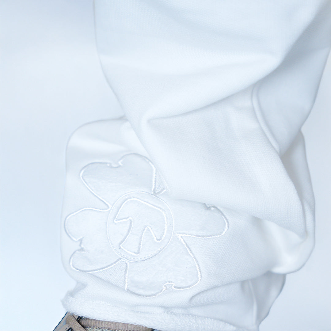 Immerse yourself in Torom's distinctive world with the White Goat Joggers. Their clean design, adorned with trefoil logos, embodies contemporary elegance. An essential piece that combines comfort and style, perfect for expressing your personality.