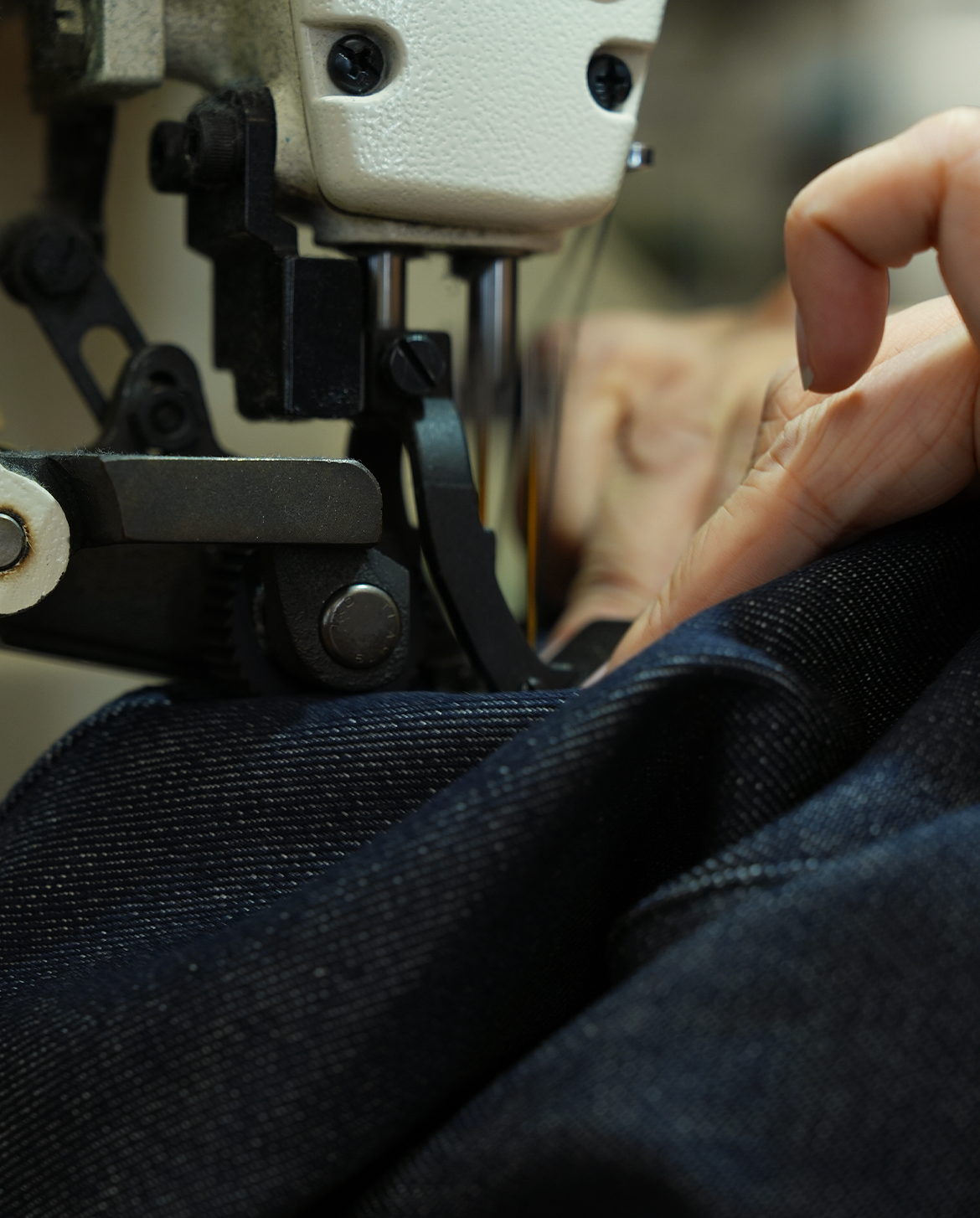 生地には新開発の反応染デニムを採用。深みのある発色と高い色堅牢度により、白い服と合わせても色移りしにくいのが特長です。