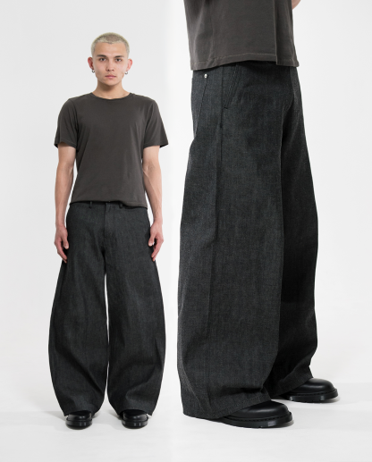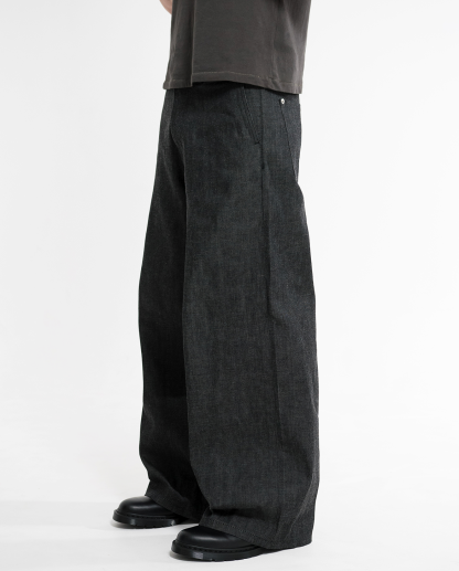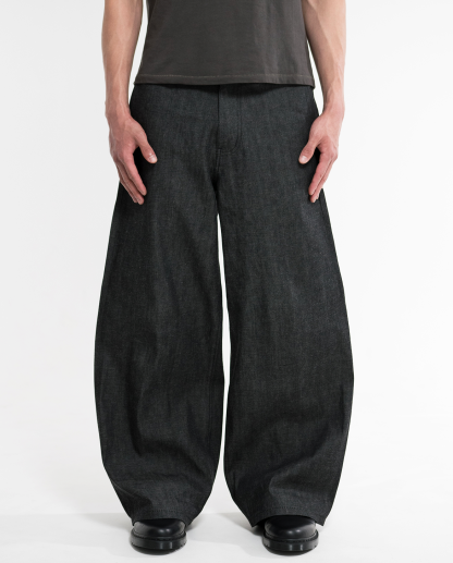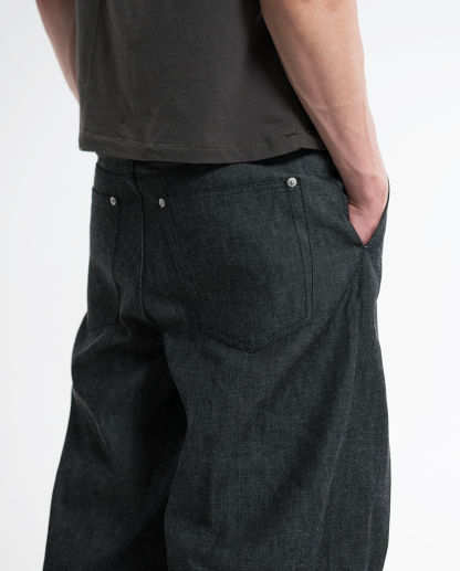 Okayama Selvedge Baggy Denim Slacks - Black