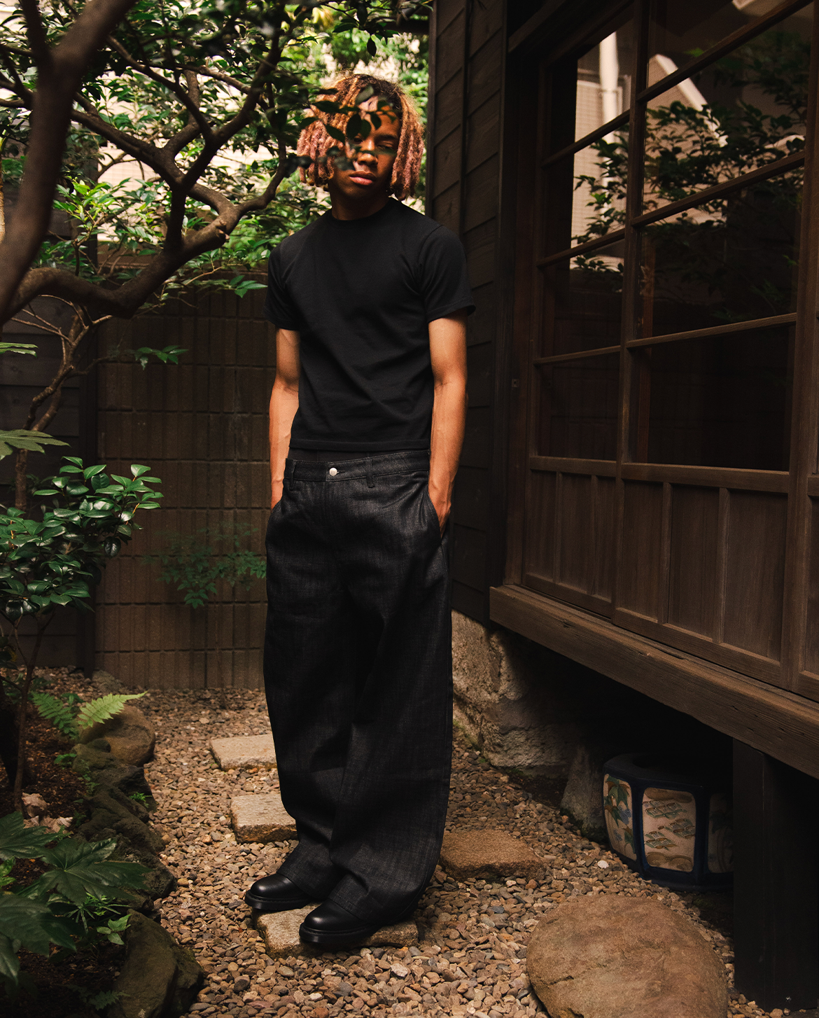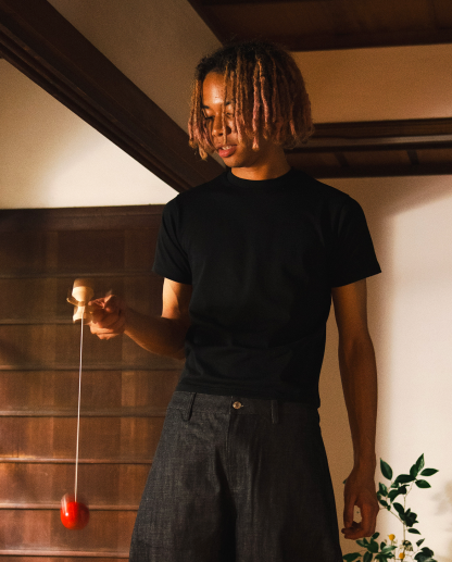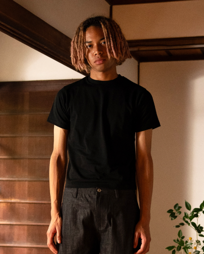都会的なムードを纏った〈Shibuya Crop Tee〉は、ウエストラインをすっきり見せる絶妙な丈感と、どんなボトムスとも好相性なバランスが魅力的。