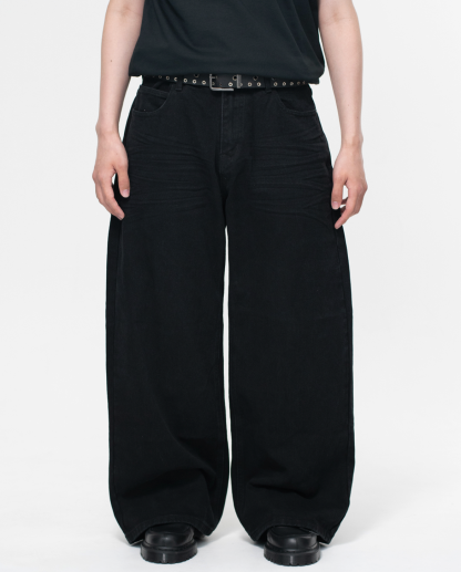 【商品名:Solid Black Super Baggy Jeans】