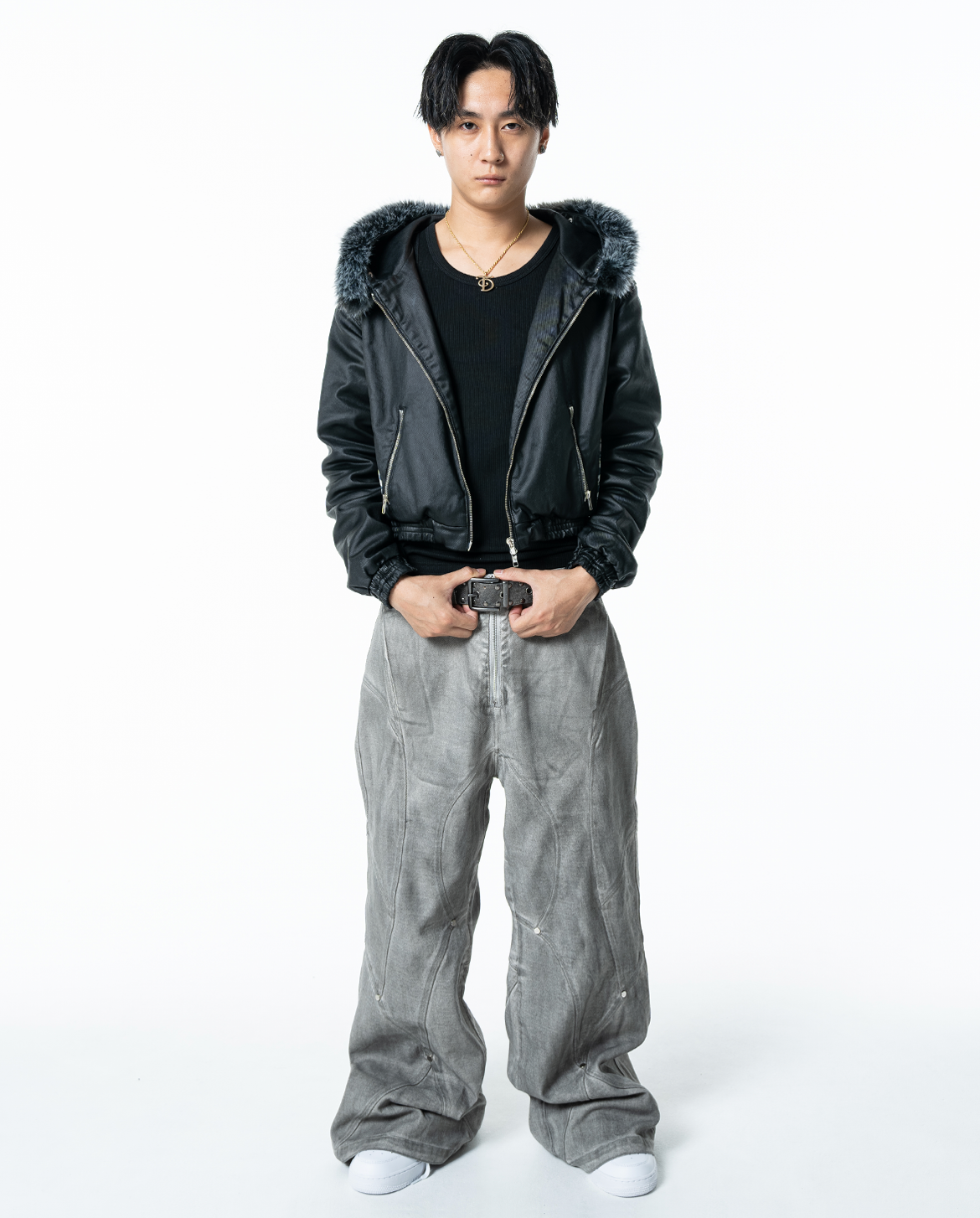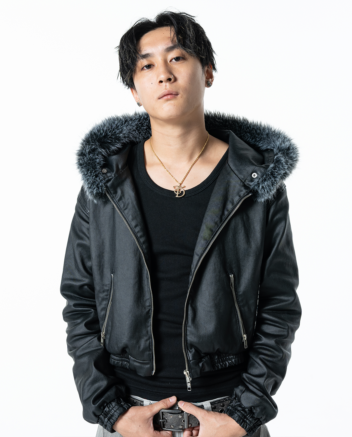フロントにはアクセントとなるヴィンテージシルバーカラーのダブルファスナーが付いており、ジップの開閉によって様々なスタイリングをお楽しみいただけます。