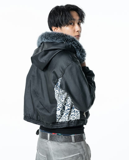 Switching Leopard Waxed Fur Jacket