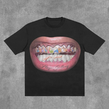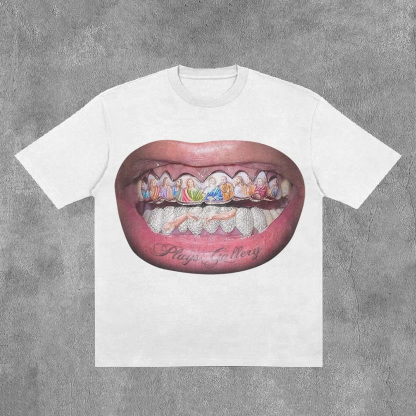 Personalized Mouth & Letter Print Short Sleeve T-Shirt