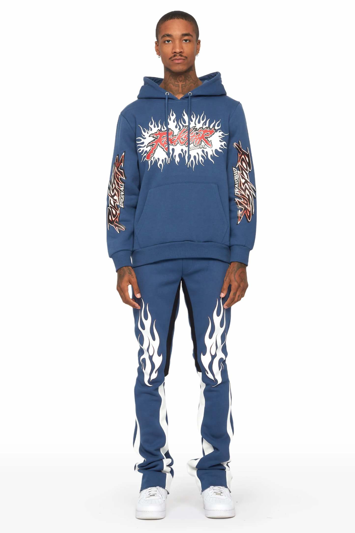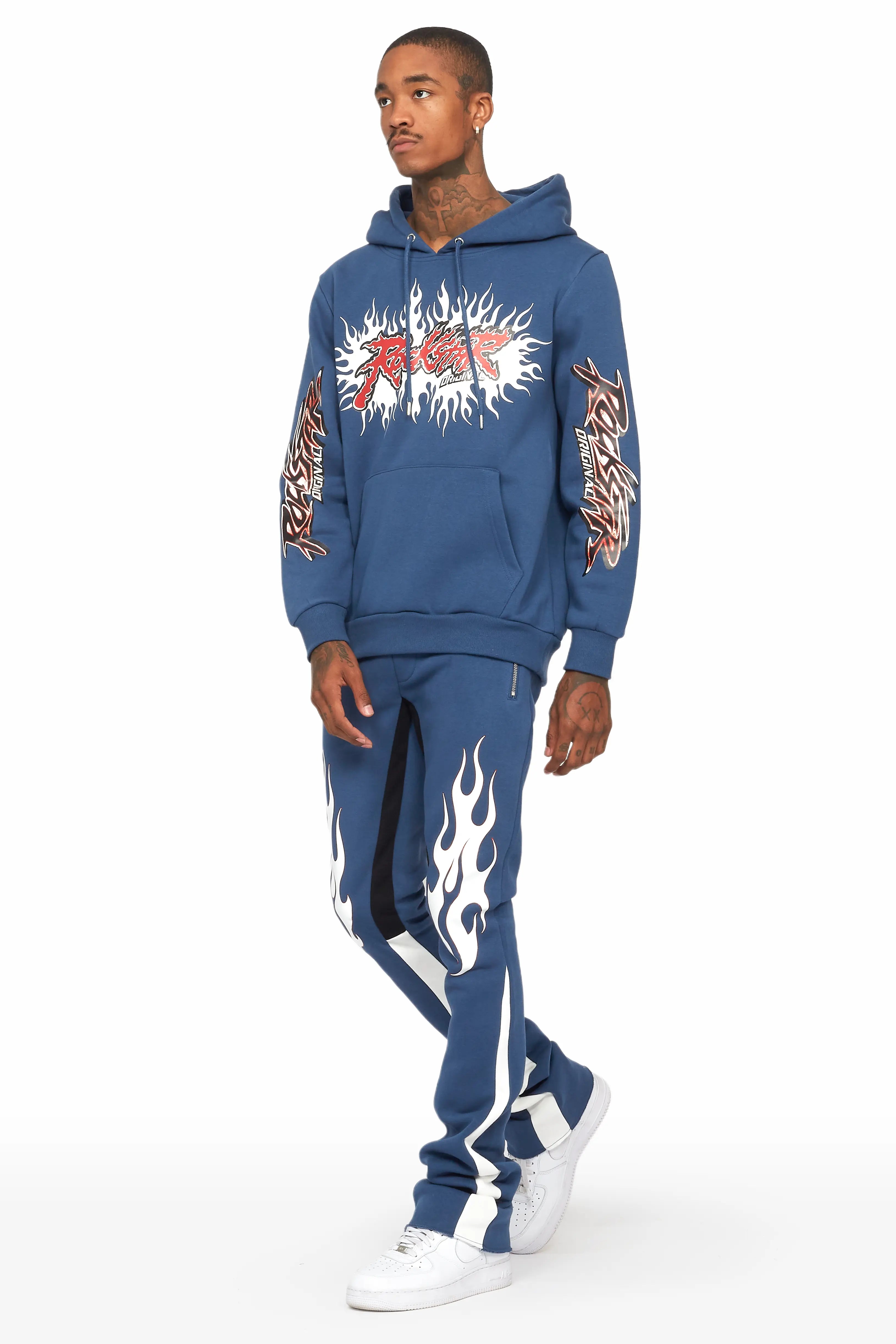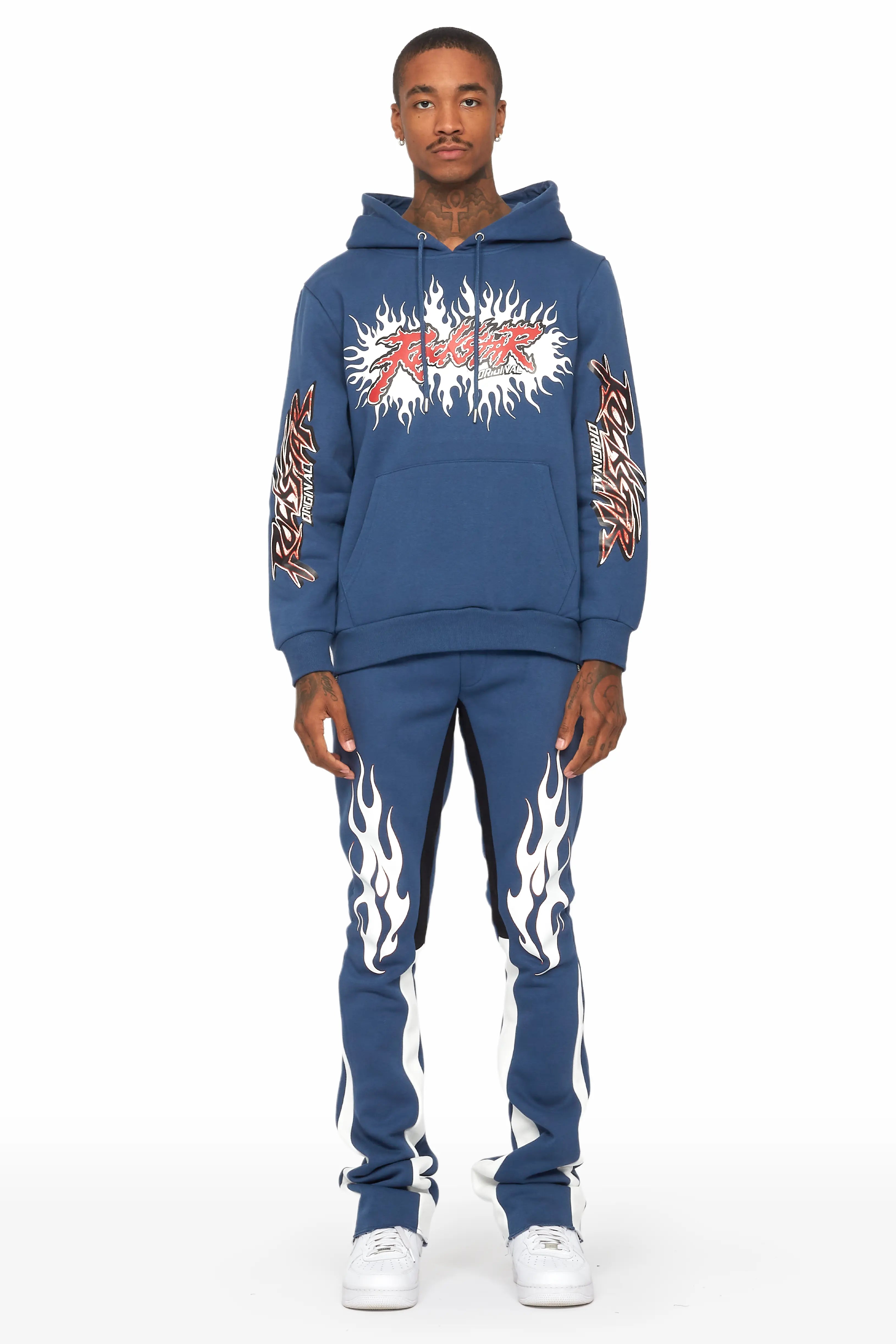 Tidus Navy Hoodie/Stacked Flare Track Pant Set