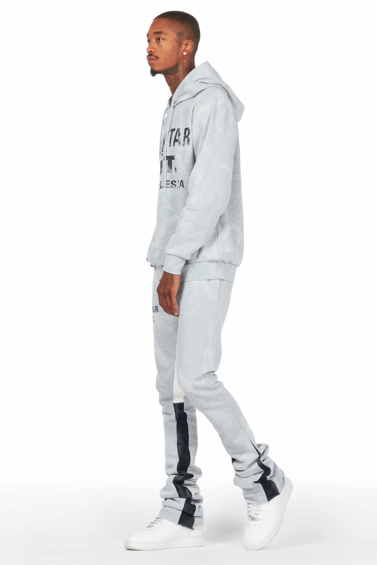Nelly Heather Grey Hoodie/Super Stacked Flare Pant Set