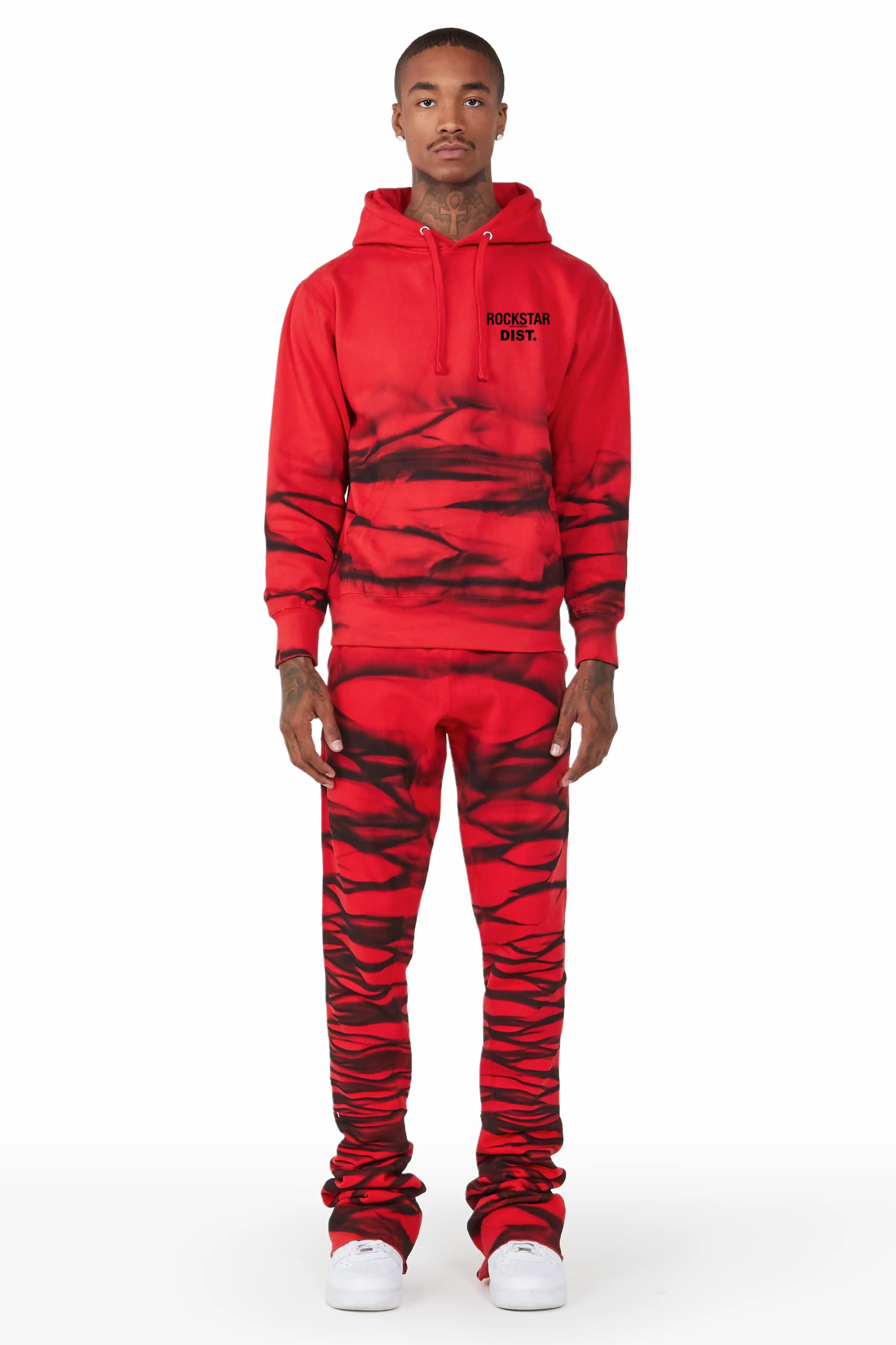 Ayden Red Graphic Hoodie Super Stacked Flare Pant Set