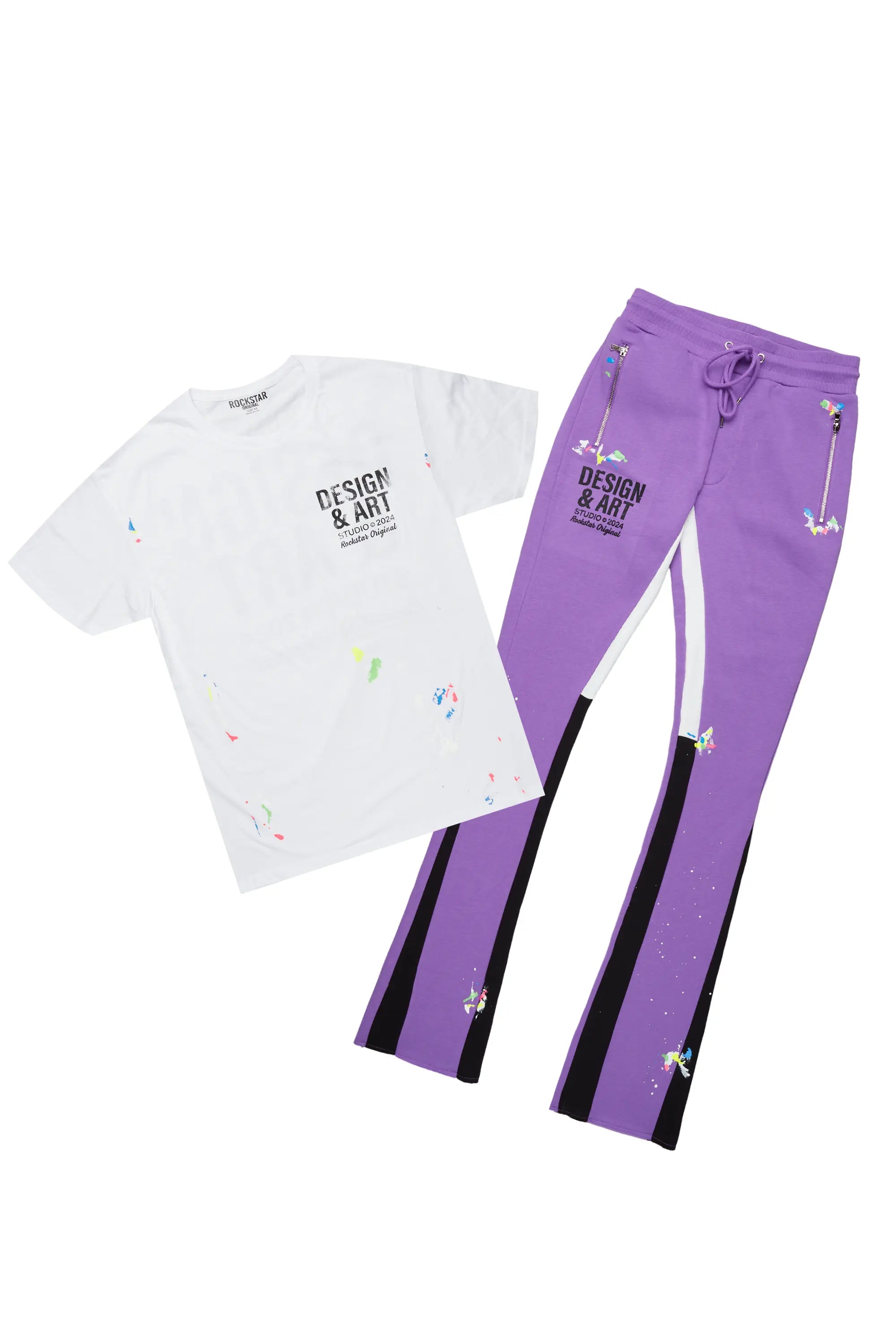 Mancha Purple/White T-Shirt Stacked Flare Track Set