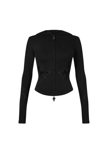 SINNER LACE CUT OUT SCULPT STRETCH ZIP HOODIE BLACK