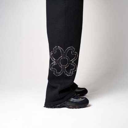 • Details: embroidered logo under the right pocket, tapered finishes at the ends, signature clover sewn at the bottom of the leg.
