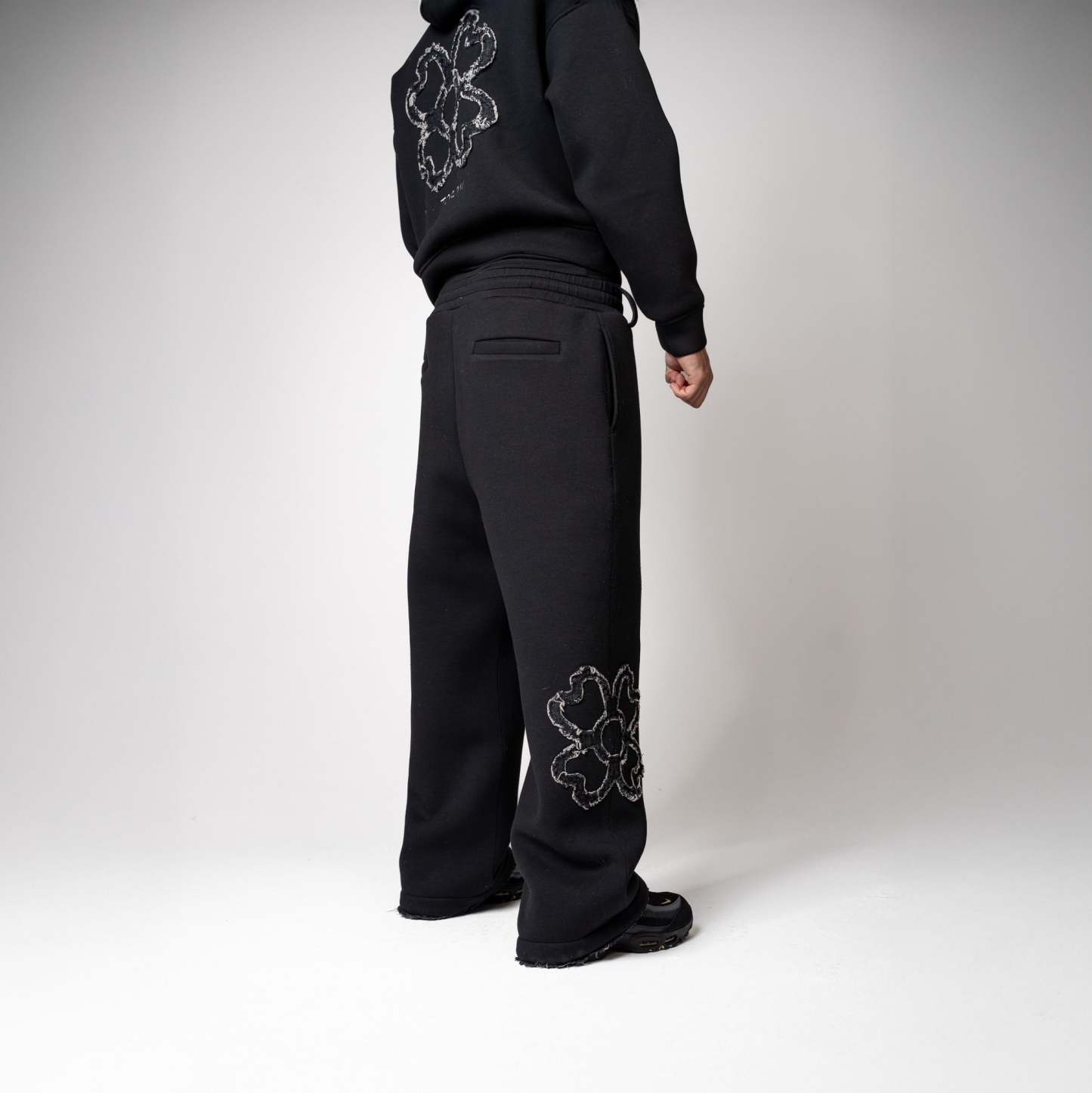 The TOROM Signature Clover pants reinvent urban jogging with a neoprene-effect fabric that combines flexibility, support, and elegance. Their soft feel and oversized cut make them as comfortable as they are stylish.