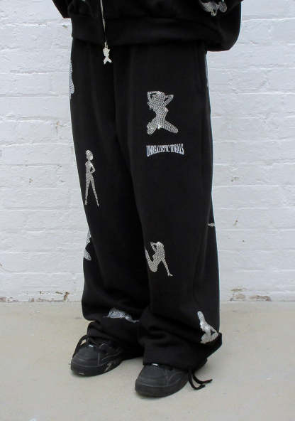 UNREALISTIC IDEALS RHINESTONE OVERSIZED SWEATPANTS BLACK
