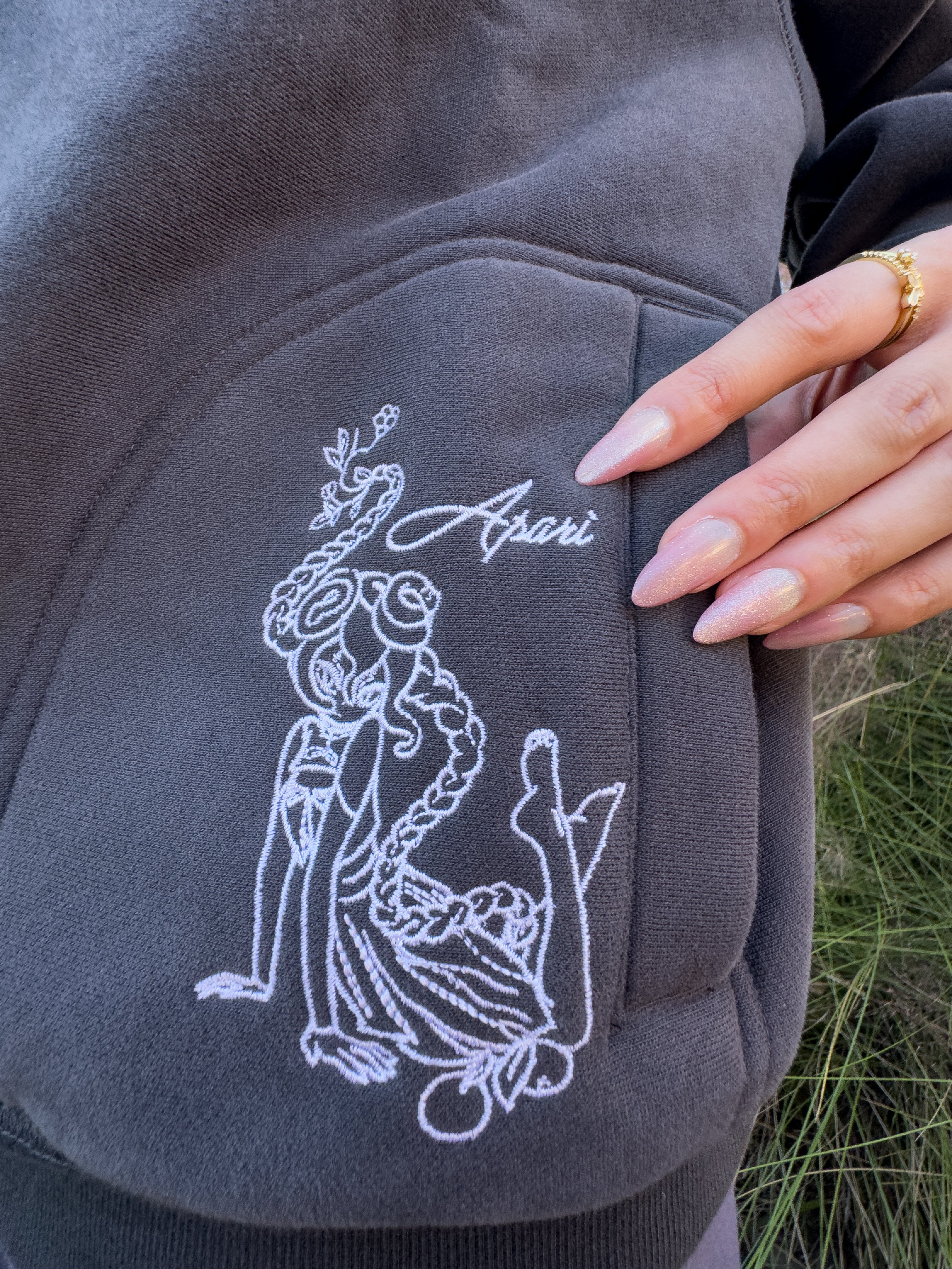 - Embroidered design on right pocket