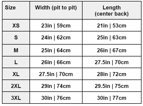 USA UNISEX SIZING: